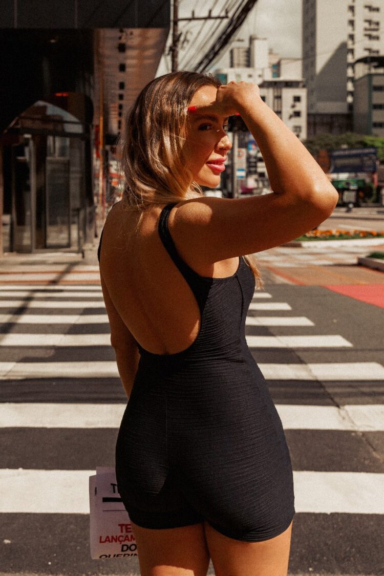 O macaquinho conta com forro duplo nos seios, e costas bem abertas, na medida para poder usar todo tipo de calcinha e não aparecer, e também conta com um elástico em volta para poder dar sustentação.